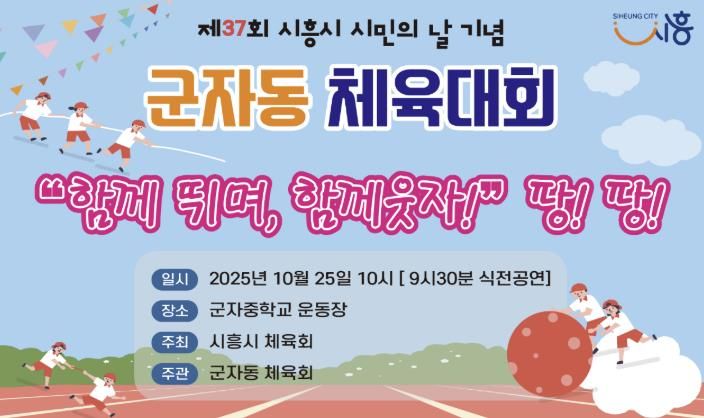 뉴한국방송뉴스통신사 신유철기자 기자 | 시흥시 군자동 체육회는 제37주년 시민의 날을 맞아 오는 25일 군자중학교 운동장에서 ‘함께 뛰며, 함께 웃자’ 체육대회를 개최한다.