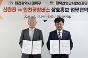 뉴한국방송뉴스통신사 신태공 기자 | 대전 대덕구는 17일 대덕산업단지관리공단과 신탄진 인천공항버스 이용 활성화를 위한 업무협약(MOU)을 체결했다. 이번 협약은 지역 산업단지 근로자의 공항 접근성 향상과 대중교통 이용 편의 증진을 위해 마련됐다. 양 기관은 협약을 통해 공항버스 이용률 제고를 목표로 홍보물 제작과 배포를 공동으로 추진하고, 운행시간표·노선·운임 등 이용 정보를 체계적으로 제공하기로 했다. 또한 산업단지 근로자를 대상으로 공항버스 이용을 독려하고, 서비스 개선을 위한 협력도 지속해 나갈 계획이다. 방기봉 대덕산업단지관리공단 이사장은 “교통 접근성은 근로자의 일상과 직결되는 문제”라며 “근로자들이 공항버스를 더 쉽고 편리하게 이용할 수 있도록 대덕구와 함께 협력하겠다”고 밝혔다. 최충규 대덕구청장은 “산업단지 근로자들의 공항 이용 편의성을 높이기 위해 신탄진 인천공항버스 활성화는 매우 중요한 과제”라며 “공단과 협력을 통해 실질적인 교통 편의 개선이 이뤄지도록 적극 지원하겠다”고 말했다. 한편, 신탄진 인천공항버스는 오전 3시 20분 첫차를 시작으로 하루 4회(