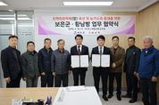 뉴한국방송뉴스통신사 권영분기자 기자 | 충북 보은군은 18일 전통 팥빵 브랜드인 황남빵(대표 최상은)과 지역특화작목 ‘팥’ 육성을 위한 업무협약을 체결했다. 이날 보은군청에서 열린 업무협약식에는 최재형 보은군수와 최상은 대표를 대신하여 참석한 최진환 대표이사를 비롯한 관계자들이 참석해 상호 협력 방안을 논의하고, 지속 가능한 지역 농업 생태계 조성에 대한 뜻을 모았다. 협약에는 보은에서 생산되는 팥의 안정적인 생산·공급 체계 구축과 가공용 팥의 품질 향상을 위한 기술 지원, 지역 농가와의 계약재배 확대 등이 담겼으며, 황남빵은 종자 보급과 유통 지원, 생산물 전량 수매를 맡고 보은군은 재배 기술 지원과 현장 컨설팅으로 생산 기반을 뒷받침할 계획이다. 군은 이번 협약을 계기로 그동안 대표 밭작물이 없던 지역에 ‘팥’을 특화작목으로 육성하기 위한 기반을 마련하고, 재배 기반 확대와 계약재배를 통해 농가 소득을 높이며 특화작목 중심의 농업 구조를 점진적으로 구축해 나갈 방침이다. 황남빵은 이번 협약을 통해 안정적인 국산 팥 공급처를 확보하고 고품질 원료 수급 기반을 강화하는 한편, 보은군과의 협력을 통해