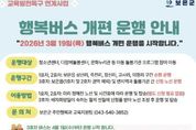뉴한국방송뉴스통신사 권영분기자 기자 | 충북 보은군은 교육발전특구사업의 일환으로 2025년 7월부터 운영 중인 ‘행복버스’를 오는 19일부터 개편 운행한다고 밝혔다. ‘행복버스’는 관내 아동들이 이동의 제약 없이 청소년센터, 결초보은 문화누리관, 다함께돌봄센터 등 지역 돌봄기관의 방과 후 프로그램에 참여할 수 있도록 지원하는 사업이다. 지난해에는 이용 신청을 받아 매월 노선을 조정하는 방식으로 운영했으나, 올해부터는 이용 편의성 향상을 위해 수요가 많은 구간은 정해진 노선에 따라 순환 운행하고, 그 외 지역은 신청을 받아 노선을 조정하는 방식으로 운영한다. 총 3대의 버스로 운행되며, 1호차와 2호차는 보은읍 죽전리·장신리·교사리·삼산리·이평리 구간을 중심으로 지난해 운행 데이터를 반영한 고정 노선을 따라 운행된다. 해당 노선은 별도 신청 없이 돌봄기관 이용 아동이 이용할 수 있다. 3호차는 1·2호차 운행 구간을 제외한 보은읍 및 면지역을 대상으로, 돌봄기관 프로그램 참여를 희망하는 아동이 사전에 신청하면 매월 노선을 조정해 운행된다. 노선표 및 배차시간 등 자세한 사항은 보은군청 누