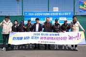 뉴한국방송뉴스통신사 김성의 기자 | 광주광역시체육회(회장 전갑수)는 호남권 중심 광역 오픈대회인 ‘2026 순천오픈 테니스대회’ 현장을 찾아 광주 연고 선수단과 관계자를 격려했다. 이번 대회는 전국 각지에서 약 260여 명의 동호인 및 선수들이 참가한 가운데 성황리에 진행되며, 남녀 단식과 동호인부 등 다양한 종목에서 열띤 경기가 펼쳐진다. 특히 호남권을 비롯한 10여 개 시·군에서 참가해 지역 간 스포츠 교류의 장으로서 의미를 더했다. 광주 대표로 참가하는 한국도로공사 테니스팀은 2019년에 창단과 함께 광주광역시와 연고 협약을 맺고 7년간 동행을 이어오고 있다. 김남훈 감독과 위휘원 선수 등 선수단 6명은 꾸준한 성과를 내며 한국 실업 테니스의 중심으로 자리잡고 있다. 이날 현장을 방문한 전갑수 광주광역시체육회장과 김광희 광주테니스협회장은 주요 경기장을 둘러보며 경기를 참관하고, 선수, 지도자들과 직접 소통하는 시간을 가졌다. 또한 대회 운영 관계자들의 노고를 격려하며 안전하고 공정한 경기 진행을 부탁했다. 전갑수 체육회장은 “광주를 대표하여 지역 연고의 가치를 지켜주는 한국도로공사 테니스 선수