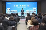 뉴한국방송뉴스통신사 김성의 기자 | 정읍시는 11일 시청 5층 대회의실에서 직원 200여 명이 참석한 가운데 3월 소통의 날 행사를 개최했다. 이날 이학수 시장은 지난 2월까지 민생회복지원금 지급과 비상근무 등 현안 업무에 매진한 직원들의 노고를 격려하며, 민선 8기의 성과와 향후 시정 방향을 공유했다. 또한 이 시장은 해빙기를 맞아 시민 생활과 직결된 주요 사업들이 본격적으로 시작되는 만큼 모든 부서가 철저히 준비해 줄 것을 당부했다. 특히 오는 6월 3일 실시되는 제9회 전국동시지방선거를 언급하며 공직자의 철저한 정치적 중립 의무와 공직선거법 준수를 강력히 주문했다. 또한 봄철 산불 예방 활동을 비롯해 정읍 동학마라톤대회와 벚꽃축제 등 지역 주요 행사의 안전하고 성공적인 개최를 위한 빈틈없는 사전 준비도 함께 강조했다. 이어 외부 전문가를 초청한 직무 특강이 진행됐다. 먼저 정읍시선거관리위원회 김윤영 지도계장이 강사로 나서 공무원의 선거 관련 금지 사항과 공직선거법 준수 지침을 상세히 안내했다. 다음으로 미래교육융합교육원 배미주 대표가 생성형 AI 도구를 활