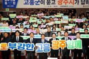 뉴한국방송뉴스통신사 김성의 기자 | 광주광역시는 12일 전남 고흥문화회관에서 ‘광주전남 행정통합 고흥군 상생토크’를 열고, 고흥군 발전 전략과 통합 이후 변화상에 대해 고흥군민들과 소통했다. 이번 행사는 여섯번째 열린 상생토크로, 통합 이후 고흥의 우주·해양·농어촌 자원을 활용해 광주·전남 균형발전을 이루기 위해 마련했다. 이날 행사에는 강기정 광주시장을 비롯해 공영민 고흥군수, 류제동 고흥군의회 의장, 고흥군민 등 600여 명이 참석해 광주전남 통합에 대한 높은 관심을 보였다. 강기정 시장은 먼저 광주전남 통합 추진상황과 향후 일정, 통합에 대한 정부 특전(인센티브) 등을 설명하며 통합 의지를 밝혔다. 강 시장은 이어 고흥군과 관련된 특별법안 특례조항으로 ▲광역생활권 지정과 교통복지 ▲항공우주 산업 육성 ▲문화관광 기반시설(인프라) 구축 지원 등을 소개했다. 특히 고흥을 비롯한 위기산업지역인 전남 동부권에 재정을 우선적으로 투입해 일자리를 지키고 광주·전남 균형발전을 이끌겠다는 구상을 발표했다. 이날 상생토크에서 공영민 고흥군수는 ▲안정적인 농어촌 재정 지원 ▲우주항공산업
