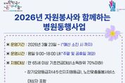 뉴한국방송뉴스통신사 신유철기자 기자 | 인천 계양구자원봉사센터는 3월 23일부터 ‘2026년 자원봉사와 함께하는 병원동행사업’을 실시한다고 밝혔다. ‘병원동행사업’은 65세 이상 기초연금 수급 어르신을 대상으로 동행매니저가 병원 방문의 전 과정을 돕는 서비스이다. 해당 사업은 인천 지역 내 병·의원급 의료기관 방문 시, ▲진료 접수 ▲키오스크 수납 ▲처방약 수령 ▲안전한 귀가까지 밀착 지원하는 ‘원스톱(One-stop) 무료 서비스’로 운영된다. 서비스는 월 4회 이내(주말·공휴일 제외) 이용 가능하며, 1회 이용 시 최대 8시간까지 지원된다. 단, 휠체어 사용 등 거동이 매우 불편한 경우나 유사 복지 서비스를 이용 중인 대상자는 중복 수혜 방지를 위해 이용이 제한된다. 2022년 시범사업으로 시작된 이번 사업은 매년 800여 명의 어르신이 이용하는 등 호응을 얻고 있다. 2026년부터는 투명성 강화를 위해 서비스 이용 시 병원동행매니저에게 신분증을 제시하는 ‘본인 확인 절차’가 도입된다. 계양구자원봉사센터 홍순석 센터장은 “자원봉사와 함께하는 병원동행사업을 통해 노