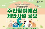뉴한국방송뉴스통신사 신유철기자 기자 | 평택시가 3월 23일부터 5월 22일까지 2027년도 예산 편성을 위한 2026년도 주민참여예산 제안사업 공모를 시행한다. 주민참여예산 제도는 예산 편성 등 예산 전 과정에 주민의 참여를 확대해 예산 운영의 투명성과 민주성을 높이기 위한 제도다. 평택시는 2026년 주민참여예산 제안사업으로 접수된 611건 가운데 171건, 약 31억 원 규모의 사업을 예산에 반영했다. 2026년도 주민참여예산 운영 규모는 56억 원이며, 공모 분야는 ▲평택시 전반의 현안 해소와 시민 편익 증진을 위한 시 일반제안사업 ▲읍면동 지역 문제 해결을 위한 읍면동 일반제안사업 ▲읍면동 주민자치회가 사업의 기획부터 실행까지 주도적으로 참여하는 주민자치회 제안사업 등 3개 분야로 운영된다. 제안을 희망하는 주민은 제안서를 작성해 평택시청 더나은평택(주민참여예산 ' 주민참여예산 제안하기)을 통해 제출하거나, 평택시청 자치행정협치과 및 읍면동 행정복지센터로 방문, 우편, 이메일로 접수할 수 있다. 아울러 ‘찾아가는 주민참여예산학교’와 ‘주민참여예산 제안발굴 컨설팅’등을 통해 관련 교육과 컨설팅도 지원받을