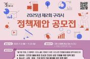 뉴한국방송뉴스통신사 신유철기자 기자 | 구리시는 오는 11월 3일부터 11월 23일까지'2025년 제2회 구리시 정책 제안 공모전'을 개최한다고 밝혔다. 이번 공모전의 주제는 ‘구리 시민(영유아·청소년·청년·중장년·노년) 나이별 맞춤형 정책 아이디어’다. 이번 공모전은 구리 시정에 관심 있는 누구나 참여할 수 있으며, 세대별로 다음과 같은 주제로 정책 아이디어를 제안할 수 있다. ▲영유아: 안전한 돌봄 환경 조성과 건강한 성장 지원 정책 ▲청소년: 교육·문화·진로 탐색 기회 확대 정책 ▲청년: 취업·주거·사회참여 촉진을 위한 청년 지원 정책 ▲중장년: 안정적 일자리·건강관리·여가 활성화 정책 ▲노년: 활기찬 노후와 사회참여 확대를 위한 고령 친화 정책 공모 참여는 온라인, 이메일, 방문 또는 우편 접수 중 편리한 방법을 선택해 제출하면 된다. 온라인 제출은 ▲국민신문고 ‘국민 생각함’ 코너 ▲구리시청 홈페이지 내 ‘시민참여’ 메뉴를 통해 가능하다. 또한 전자우편 제출과 구리시청 총무과 열린 시정팀 방문·우편 접수도 할 수 있다. 접수된 제안은 실무