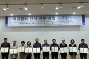 뉴한국방송뉴스통신사 신유철기자 기자 | ‘수원시 학교급식 잔식 기부사업’에 참여하는 학교가 기존 8개에서 14개로 늘어난다. 수요처도 2개 기관에서 8개 기관으로 증가한다. 수원시는 19일 농수산물도매시장 관리동 대회의실에서 신규 참여기관과 업무협약을 체결하고, 적극적인 협력을 약속했다. 신규 참여기관은 다솔·당수초등학교, 권선중학교, 망포·매향여자정보·조원·천천·한봄고등학교 등 8개 학교와 서호·수원·수원YWCA·우만·청솔·효경의손길 등 6개 재가노인지원서비스센터이다. 협약에 따라 8개 학교는 학교급식 잔식 기부에 협력하고, 6개 재가노인지원서비스센터는 학교급식 잔식을 기부받아 도움이 필요한 이웃에 전달하는 역할을 한다. 학교급식 잔식 기부사업은 학교급식에서 배식하지 않고 남은 음식을 먹거리 취약계층에 지원해 돌봄 사각지대를 해소하고, 식량자원을 순환하는 사업이다. 수원시와 수원교육지원청·수원지속가능발전협의회·수원시자원봉사센터, 8개 초중고등학교, 광교종합사회복지관·우만종합사회복지관은 지난해 8월 협약을 체결하고, 9월 2일부터 12월 12일까지 학교급식 잔식 기부 시범사업을 운영한