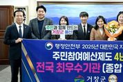 뉴한국방송뉴스통신사 신유철기자 기자 | 창원특례시는 12월 17일 행정안전부가 주관한 ‘2025년 주민참여예산제 성과평가’에서 우수 지자체로 선정돼 행정안전부 장관 표창과 함께 특별교부세 2,000만 원을 확보했다고 밝혔다. 행정안전부는 건전한 지방재정 운영과 지방재정의 민주성·책임성·투명성 강화를 위해 전국 243개 지방자치단체를 대상으로 주민참여예산제 운영 성과를 매년 평가하고 있다. 이번 평가에서 창원특례시는 ▲주민참여예산위원회 전문성 강화 ▲청년 참여 기반 확대 ▲맞춤형 주민참여예산 교육 운영 등 제도 활성화를 위한 다양한 노력을 기울인 점에서 높은 평가를 받았다. 시는 예산편성 과정 등에 대한 주민의 직접 참여를 보장하기 위해 주민참여예산제를 적극 운영해 왔으며, 앞으로도 다양한 계층의 참여 확대와 제도 운영의 내실화를 통해 주민이 체감할 수 있는 참여예산 제도를 정착시켜 나갈 계획이다. 정숙이 자치행정국장은 “이번 수상은 시민들의 적극적인 참여와 관심이 만들어낸 성과”라며 “앞으로도 주민 주도의 참여예산제가 실현될 수 있도록 적극 노력하겠다”고 밝혔다. [뉴스출처 : 경상남도창원시]