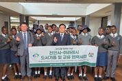 뉴한국방송뉴스통신사 신태공 기자 | 짐바브웨를 방문 중인 천안시 대표단이 지난 16일(현지시각) 하라레 시청에서 우호교류 10주년 기념행사에 참석해 양 도시 간 협력 관계를 공고히 했다. 김석필 권한대행 부시장은 이날 제이콥 마퓸 하라레시장과 면담을 갖고, 우호교류 10주년 기념패를 상호 교환했다 천안시는 천안의 국보인 ‘봉선홍경사 갈기비’를 형상화한 기념패를 전달했으며, 하라레시는 양 도시의 공동 발전을 기원하는 기념식수 행사를 열고 협력의지를 다졌다. 대표단은 하라레 시립도서관을 찾아 천안시 청수도서관 등에서 마련한 영어 도서 233권을 기증했다. 또한 샐리 무가베 국립 어린이병원을 방문해 현지 아동들을 위한 교육용 미니블록과 영어 동화책을 전달했다. 이어 주짐바브웨 대한민국 대사관이 주최한 환영 행사에 참석해 현지 한인회, 기업 관계자들과 함께 아프리카 지역 내 천안 기업의 진출 방안과 국제적 네트워크 강화 대책을 논의했다. 대표단은 이후 남아프리카공화국으로 이동해 세계한인경제무역협회(OKTA) 케이프타운지회와 수출·통상 협력 방안을 협의하고 한국전쟁 참전 기념비를