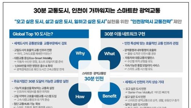 뉴한국방송뉴스통신사 신유철기자 기자 | 인천광역시는 원・신도심 균형발전과 글로벌 스마트도시 조성을 위한'인천광역시 스마트도시계획(2025~2029)'이 국토교통부로부터 2025년 12월 30일 최종 승인을 받아 계획 수립을 완료했다. 시는 지난 1월 30일 용역 수행 완료보고회를 개최하고, 도시계획국장을 비롯한 관련 기관 및 부서 관계자들이 참석한 가운데 스마트도시계획의 단계별 추진 방향과 기관·부서별 협조 사항을 논의했다. 이번 스마트도시계획은 '스마트도시 조성 및 산업진흥 등에 관한 법률'제8조에 따라 국토교통부 제4차 스마트도시종합계획과 연계해 수립됐다. 계획의 주요 목표는 ▲균형발전 스마트도시 ▲모두가 함께하는 메가시티 ▲글로벌 스마트도시 ▲데이터 기반 혁신도시 등 4개 분야이며, 이를 실현하기 위해 ‘모두가 누리는 스마트도시’ 등 8대 추진전략과 ‘인천형 스마트 경로당 보급확산 서비스’ 등 41개 스마트도시 이행과제를 담았다. 이를 통해 군・구별 지역 특성에 맞는 인천형 스마트도시 조성을 추진할 계획이다. 또한 시민과 공무원 설문조사(3회), 부서 인터뷰(3회), 전문가 자문회