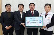 뉴한국방송뉴스통신사 권영분기자 기자 | iM뱅크는 17일 청주시청을 방문해 대한적십자사 충북지사(회장 장현봉)와 함께 청주시 사회복지시설 지원을 위한 물품을 기탁했다. 임시청사 직지실에서 진행된 기탁식에는 이범석 청주시장, 김기만 iM뱅크 부행장, 장현봉 대한적십자사 충북지사 회장이 참석했다. 이번 후원은 지역 취약계층의 생활 안정을 돕기 위해 마련됐다. iM뱅크는 총 2천만원 상당의 커피 드립백 세트, 건강차, 세탁세제 등을 일상생활에 필요한 품목을 대한적십자사 충북지사를 통해 청주시 독거노인통합지원센터와 장애인공동생활가정에 지원한다. 특히 후원 물품은 장애인 표준사업장에서 생산된 제품을 구매해 지원함으로써, 취약계층 지원과 함께 장애인 고용 및 자립을 지원하는 상생형 사회공헌이 이뤄졌다. iM뱅크 김기만 부행장은 “지역사회와 함께하는 실질적인 지원을 통해 기업의 사회적 책임을 이행하고자 이번 기부를 진행했다”며 “앞으로도 지역 특성과 수요를 반영한 다양한 사회공헌 활동을 지속적으로 확대해 나가겠다”고 말했다. 이범석 시장은 “연말 훈훈한 나눔으로 기부 나눔 활성화를 위해