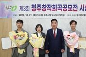 뉴한국방송뉴스통신사 권영분기자 기자 | 청주시가 후원하고 (사)청주연극협회가 주최‧주관한 제3회 청주 창작희곡 공모전 시상식이 21일 임시청사 직지실에서 개최됐다. 이번 공모전은 한국 연극계의 새로운 목소리를 발굴하고 창작희곡의 활성화를 도모하기 위해 마련됐으며, 전국에서 다양한 소재와 형식을 담은 77편의 작품이 출품되는 등 뜨거운 관심을 모았다. 심사는 연출가, 극작가 등 연극 전문인으로 구성된 심사위원단이 맡아 작품의 완성도, 독창성, 실연성의 3개 항목에 대한 심사를 진행해 최종 3개의 작품을 선정했다. 최종 선정된 작품은 독창성이 높고 무대화의 가능성이 높다고 평가된 작품으로 대상(상금 1,500만원)은 이홍이 작가의 ‘모스크바의 바다’, 최우수상(상금 1,000만원)은 노동훈 작가의 ‘고민수의 변수 통제 시뮬레이션’, 우수상(상금 500만원)은 서준교 작가의 ‘다이치’에 영광이 돌아갔다. 수상작들은 저작권 계약을 맺고 청주 극단에 공연 제작 우선권을 지원하게 된다. 상을 수여한 이범석 청주시장은 “창작희곡은 한국 연극의 뿌리를 지탱하는 중요한 장르로, 이번 공모전을 통해 참신