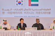 뉴한국방송뉴스통신사 신유철기자 기자 | 아랍에미리트(UAE)를 국빈 방문한 이재명 대통령은 19일(현지시간) "인공지능 중심의 첨단산업 협력을 통해 미래 성장 동력을 함께 창출하자"고 제시했다. 또 "청정 에너지와 방산 분야 협력을 고도화해 세계 최강국으로 함께 성장할 모멘텀을 확보하자"고도 했다. 이 대통령은 이날 아부다비 소재 한 호텔에서 열린 '한-UAE 비즈니스 라운드 테이블' 행사에 참석해 양국 정부 및 기업의 교류 확대 필요성을 강조하며 이같이 언급했다. 이번 행사는 이 대통령의 UAE 국빈 방문을 계기로 개최된 경제행사로 한국경제인협회, 대한무역투자진흥공사, UAE 대외무역부, 아부다비 상공회의소가 공동 주최했으며, 양국 정부, 기관, 기업 관계자 40여 명이 함께했다. 이 대통령은 기조연설을 통해 "한국과 UAE는 바라카 원전 건설, 아크부대 파견 등으로 서로의 발전을 이끌어오며 진정한 형제의 나라이자 동반자인 라피크(Rafiq)로 거듭나고 있다"라며, "2071년까지 UAE가 세계 최고 국가로 도약하기 위한 최적의 파트너가 한국"임을 강조했다. 아랍어 라피크(Rafiq)는 먼 길을