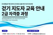 뉴한국방송뉴스통신사 양호선기자 기자 | 원주시보건소는 시민들의 올바른 걷기 문화 확산을 위해 5월 11일까지 상반기 ‘걷기지도자 2급 과정’ 수강생 50명을 선착순으로 모집한다. 이번 교육은 걷기운동의 중요성, 올바른 걷기 자세, 걷기 테크닉 등 이론과 실습을 아우르는 전문 교육으로, 5월 16일부터 17일까지 2일간 진행된다. 교육을 수료하면 ‘걷기지도자 2급 자격증’을 취득할 수 있다. 자격증 취득 후에는 각종 걷기 행사 지원, 걷기동호회 운영 및 지도 등 다양한 걷기 관련 활동에 시민 활동가로 참여할 수 있다. 신청 자격은 만 19세 이상 원주시민이며, 참가 신청은 (사)한국걷기협회 방문 또는 이메일, 팩스로 접수한다. [뉴스출처 : 강원도 원주시]
