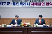 뉴한국방송뉴스통신사 신유철기자 기자 | 용인특례시는 6일 강원특별자치도 양구군과 자매결연을 하고, 두 도시의 교류와 발전을 위해 적극 협력하기로 했다. 이상일 시장은 이날 양구군청 중회의실에서 서흥원 군수와 두 도시 간 우의를 증진하고 상호 교류‧협력하는 데 합의하고, 자매결연 협약서에 서명했다. 이번 협약으로 양구군은 시의 16번째 자매도시가 됐다. 이상일 시장은 “양구는 문화예술 분야에서 과감한 투자를 하고 있고, 양구군립박수근미술관은 2023년 양구 출신 박수근 화백의 1956년 작품 ‘가족’을 품었는데 두 도시가 앞으로 가족처럼 잘 지냈으면 한다”며 “이번 협약을 계기로 양 도시가 협력을 강화해서 함께 발전하길 기원한다”고 말했다. 이 시장은 “양구군과 용인시의 훌륭한 농산물들이 양 도시에서 소비하도록 서로 홍보하는 등 협조 체계를 갖추는 노력도 기울이자"라며 "양구에는 테니스장, 축구장 등 스포츠 시설이 아주 잘 갖춰져 있는 만큼 용인의 스포츠팀이나 단체들이 양구를 찾아 훈련하는 등 체육 분야의 협력도 도모하면 좋겠다"고 했다. 서흥원 군수는 “용인의 인프라와 비전이 대한민국