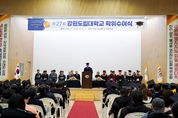 뉴한국방송뉴스통신사 신유철기자 기자 | 강원도립대학교는 2월 13일 11시, 대학 다목적관에서 제27회 학위수여식을 진행했다. 이번 학위수여식에서 졸업생 230명이 영광스러운 학위를 수여받았으며, 졸업생과 학부모를 비롯해 김진태 강원특별자치도지사, 강원특별자치도의회 의원 등 약 400여 명이 참석해 졸업의 기쁨을 함께 나눴다. 이날 전체 수석을 차지한 레저스포츠과 정소영 학생이 강원특별자치도지사 표창 수상의 영예를 안았으며, 강원특별자치도의회 의장 표창은 바리스타제과제빵과 옥지훈 학생과 사회복지과 고요엘 학생에게 수여됐다. 또한 각 학과 수석 10명에게는 강원도립대학교 총장 표창이 수여됐으며, 우수한 학업 성취와 학과 활동을 통해 대학 발전에 기여한 22명의 학생들에게는 유관기관 및 단체장 표창이 수여됐다. 최종균 총장은 축사를 통해 졸업생들의 노력과 성취를 격려하며 “졸업생들은 지식뿐 아니라 사회가 요구하는 실력과 책임감을 함께 갖춘 인재”라며 사회 진출에 대한 기대를 전했다. 이어 졸업생들에게 끊임없는 도전과 자기 성찰의 중요성을 강조하며, “주변의 기대보다 자신의 내면의 목소리에