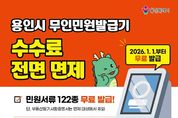 뉴한국방송뉴스통신사 신유철기자 기자 | 용인특례시는 2026년 1월 1일부터 지역 내 설치된 무인민원발급기에서 발급되는 민원서류 수수료를 전면 면제한다고 25일 밝혔다. 이번 조치는 ‘용인시 제증명 등의 수수료 징수 조례’ 일부를 개정해 시민들의 행정 서비스 이용 부담을 줄이기 위해 마련됐다. 이에 따라 2026년부터 지역 내 무인민원발급기에서는 주민등록등·초본, 가족관계서류, 토지·건축 관련 서류 등 총 122종의 민원서류를 무료로 발급받을 수 있다. 다만, 법원 소관 사무인 부동산등기사항증명서는 면제 대상에서 제외된다. 현재 시는 시청과 구청, 읍·면·동 행정복지센터를 비롯해 병원, 은행 등 다중이용시설에 총 57대의 무인민원발급기를 운영하고 있다. 이상일 시장은 “이번 수수료 전면 면제로 시민 누구나 시간과 비용의 제약 없이 무인민원발급기를 이용할 수 있을 것으로 기대한다”며 “앞으로도 시민의 일상에서 체감할 수 있는 편리하고 효율적인 민원환경 조성을 지속적으로 추진하겠다”고 말했다. 한편, 지문 인식이 어려워 무인민원발급기 이용에 불편을 겪는 경우에는 가까운 행정복지센터에서 지문