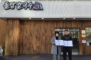 뉴한국방송뉴스통신사 신유철기자 기자 | 부산 금정구 남산동은 지난 21일, 관내 업소인 ‘제주돌담칼국수 범어사점'과 업무협약(MOU)을 체결하고, 복지 특화사업인 ‘죽이랑, 건강이랑' 사업을 추진한다고 밝혔다. ‘죽이랑, 건강이랑 사업'은 남산동 행정복지센터가 2025년부터 추진 중인 민·관 협력사업으로, 관내 홀로 어르신 등 식생활에 어려움이 있는 취약 가구 20세대를 대상으로 월 1회 영양죽과 반찬을 지원함으로써 건강한 일상생활 유지를 돕고 정서적 돌봄을 통해 고독사를 예방하고자 한다. 민경민 제주돌담칼국수 범어사점 대표는 "정성껏 만든 영양죽으로 이웃 나눔을 실천할 수 있어 매우 뜻깊고, 작은 정성이지만 어려운 이웃들이 온정을 느낄 수 있기를 바란다”라고 말했으며, 문영이 남산동장은 "복지공동체 조성을 위해 나눔을 실천해 주시는 업체에 너무 감사드리며, 앞으로도 다양한 민·관 협력을 통해 이웃이 이웃을 돌보는 지역사회 돌봄 체계 구축을 위해 노력하겠다”라고 전했다. [뉴스출처 : 부산시 금정구]