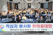뉴한국방송뉴스통신사 양호선기자 기자 | 대한적십자사봉사회 정선군협의회는 11월 14일 정선농협 한우타운에서 봉사단원 간 화합과 봉사원으로서의 자긍심을 높이기 위한 ‘2025년 적십자봉사원 한마음대회’를 개최했다고 밝혔다. 이번 대회는 대한적십자사봉사회 정선군협의회가 주관했으며, 최승준 정선군수를 비롯해 대한적십자사봉사회 정선군협의회원과 유관 기관·단체장 등 250여 명이 참석했다. 행사는 내빈 소개와 정선군수 축사를 시작으로, 2025년 한 해 회원들의 봉사활동 영상을 공유하고 우수회원에 대한 포상과 기념식, 성희롱 예방 인형극 관람, 화합 프로그램 등 다양한 순서로 진행됐다. 최미숙 대한적십자사봉사회 정선군협의회장은 “재난·재해 발생 시 현장에서 구호활동을 펼치며 지역사회의 재난 안전망 역할을 수행하고, 도움이 필요한 이웃을 위해 헌신하는 봉사원들에게 깊이 감사드린다”며 “이번 한마음대회가 나눔의 길을 함께하는 봉사원들이 서로 응원하고 화합하는 뜻깊은 시간이 되길 바란다”고 말했다. [뉴스출처 : 강원도정선군]