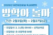 뉴한국방송뉴스통신사 신유철기자 기자 | 인천광역시교육청신트리도서관은 2월 3일부터 27일까지 어린이들의 독서 습관 형성을 위한 겨울방학 이벤트 ‘방학아 놀자’를 운영한다. 이번 프로그램은 독서 활동을 놀이처럼 즐길 수 있는 미션 수행형으로, 어린이들이 자연스럽게 책을 접하며 도서관을 즐거운 문화공간으로 경험할 수 있도록 돕고자 마련했다. 점수는 2월 3일 오전 9시부터 어린이자료실에서 선착순으로 진행하며, 자세한 사항은 신트리도서관 누리집을 참고하거나 어린이자료실로 문의하면 된다. [뉴스출처 : 인천광역시교육청]