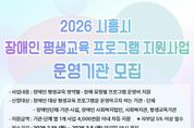 뉴한국방송뉴스통신사 신유철기자 기자 | 시흥시는 장애인의 학습권을 보장하고 사회참여 기회를 확대하기 위해 ‘2026년 장애인 평생교육 프로그램 지원사업’을 추진하는 가운데 운영기관을 모집한다. 이번 공모사업은 경기도와 시흥시가 공동으로 예산을 지원해 장애인의 역량 개발을 돕고, 지역사회와의 소통 기반을 마련하고자 추진된다. 공모 분야는 장애인 평생교육 7대 분류인 ▲기초문해 ▲학력 보완 ▲직업 능력 향상 ▲문화예술 ▲인문 교양 ▲시민참여 ▲성인 진로 등이며, 장애인 대상 영역별ㆍ유형별 프로그램 운영비를 지원한다. 지원 대상은 시흥시 관내 비영리민간단체로 등록된 장애인 단체ㆍ시설, 장애인 사회복지법인, 사회복지관 및 평생교육기관이다. 선정된 기관에는 1개 사업당 최대 400만 원 이내의 보조금이 지원되며, 보조금 신청액 대비 5% 이상의 자부담 편성이 필수다. 신청 기간은 2월 19일부터 3월 5일까지이며, 신청은 지방보조금관리시스템인 ‘보탬e’를 통해서 온라인 신청으로 진행된다. 사업은 4월부터 11월까지 진행된다. 김상동 평생교육원장은 “이번 공모를 통해 장애 유형과 특성을 고려한 수