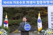 뉴한국방송뉴스통신사 신유철기자 기자 | 이상일 용인특례시장은 6일 처인구 양지면 대대리 ‘자유수호희생자위령탑’에서 열린 제45회 자유수호희생자 합동위령제에 참석해 희생자들을 추모했다. 이날 행사엔 이상일 시장을 비롯한 박창무 한국자유총연맹 용인시지회장 등 지역 내 단체 관계자와 시민 50여 명이 참석했다. 행사는 희생자를 기리기 위한 추도 의식, 추념사·추도사, 조가 연주와 제창, 진혼무, 헌화 순으로 진행됐다. 이상일 시장은 추도사에서 “고대부터 자유는 인간에게 가장 중요한 가치로 자유를 얻지 못하면 우리는 평등해질 수가 없다”며 “선배 세대들이 목숨을 바치면서 자유를 지켜낸 모습만 봐도 자유는 그냥 얻어진 것이 아니다”라고 강조했다. 이 시장은 “우리가 매년 위령제를 지내는 것은 1990년 9월 21일 희생당하신 분들의 고귀한 넋을 우리가 면면히 잘 이어받아 선배 세대가 소중하게 지킨 이 나라를 더욱더 발전시켜 후배 세대들에게 물려주기 위함이라고 생각한다”며 “호국영령의 넋이 하늘나라에서도 늘 평안을 누리시길 기원드린다”고 했다. 자유수호희생자위령탑은 1950년 9월 21일 용인·화성·수원 등지