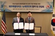 뉴한국방송뉴스통신사 신유철기자 기자 | 제주특별자치도가 미국 동부 50만 한인을 대표하는 뉴욕한인회와 손잡고 경제·관광·문화·교육 분야 글로벌 협력 네트워크를 본격 가동한다. 제주도는 19일 오후 4시(현지시간) 미국 워싱턴DC 소재 하얏트 플레이스 호텔에서 뉴욕한인회와 상생 교류발전 업무협약을 체결했다. 뉴욕한인회는 뉴욕 대도시권과 뉴저지, 코네티컷 일부 지역 약 50만 한인을 대표하는 비영리단체로 한인 권익보호와 문화·경제·교육·복지사업, 이민자 지원 등을 담당한다. 제주도가 미주지역 한인회와 협약을 맺은 것은 지난해 10월 미주한인회총연합회에 이어 두 번째다. 협약식에는 오영훈 지사와 이명석 뉴욕한인회장을 비롯한 양측 관계자 20여 명이 참석해 다양한 분야에 대한 구체적인 협력방안을 논의했다. 주요 내용은 △제주형 휴가지 원격근무(워케이션)·배움여행(런케이션) 프로그램 홍보 및 참여 촉진 △관광·지역경제 활성화를 위한 네트워크 협력 사업 △협약기관 간 지속가능한 공동체 발전 및 상생 기반 마련 등이다. 오영훈 지사는 “뉴욕한인회와의 업무협약은 한인사회 발전과 고국 연결