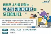 뉴한국방송뉴스통신사 김성의 기자 | 광주광역시 북구는 구정 소식지인 ‘북소리’를 통해 지역의 생생한 소식을 전달하는 명예기자단을 모집한다고 14일 밝혔다. ‘북소리 명예기자단’은 구정 홍보에 주민들의 참여를 활성화하기 위해 지난 2009년 발족한 이후 현재까지 운영되고 있다. 이번 모집에서는 제9기 명예기자단 40여 명을 선발할 계획이다. 지역사회에 관심이 많고 기사 작성 및 인터넷 활용 능력을 갖춘 북구 주민이라면 누구나 신청할 수 있다. 모집 기간은 다음 달 12일까지이며 신청 방법은 지원서와 자유 주제 기사 1개를 작성해 이메일로 제출하면 된다. 지원자들이 제출한 서류를 바탕으로 맞춤법, 문장 표현력, 구정 이해도 및 관심도 등의 기준에 따라 심사한 뒤 2월 말 최종 합격자를 확정될 계획이다. 선발된 명예기자는 오는 3월부터 2년간 활동하며 주민들의 시선에서 지역 소식과 미담 사례 등을 취재해 ‘북소리’에 연 1회 이상 기사를 게재한다. 북구는 명예기자단의 원활한 활동을 위해 편집회의, 워크숍, 교육 등을 지원하고 원고가 채택될 경우 소정의 원고료를 지급할