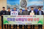 뉴한국방송뉴스통신사 신다은기자 기자 | 진도군이 전라남도가 주관한 ‘2025년 전라남도 나무심기 평가’에서 ‘대상’을 받았다. 이번 평가에서는 전남의 22개 시군을 대상으로 ▲나무심기 실적 ▲홍보 활동 ▲신규 시책 발굴 ▲예산 활용 등 전반적인 추진 과정을 종합적으로 심사했다. 진도군은 공원관리사업소를 중심으로 녹지 공간 조성 사업을 체계적으로 추진하며 높은 평가를 받았다. 특히, 최근 3년 동안 ‘나무심기 평가’에서 ▲2023년 우수상 ▲2024년 최우수상▲2025년에는 영예의 대상을 받으며, 3년 연속 수상과 더불어 평가 등급이 꾸준히 상승하는 의미 있는 성과를 거뒀다. 진도군은 2025년 나무 식재 실적 역시 군 단위에서 최고 수준을 기록했다. 주민들의 생활권을 중심으로 꽃길과 가로수길을 넓히고, 마을 경관을 살리는 녹지 공간을 조성했으며, 주민들이 직접 참여하는 꽃길 가꾸기까지 다양한 녹지 정책을 펼치며 군민이 체감하는 녹지 환경을 만들어 왔다. 김희수 진도군수는 “이번 수상은 현장에서 묵묵히 노력해 온 직원들과 함께 참여해 주신 군민 여러분이 만들어낸 값진 성과다”