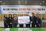 뉴한국방송뉴스통신사 신유철기자 기자 | 구로구가 이달 19일 구청 르네상스홀에서 ‘제12회 걸으며 기부하는 건강계단 적립금 기부 행사’를 개최했다. ‘걸으며 기부하는 건강계단’은 구청 내 설치된 건강계단 이용자 수에 따라 고대구로병원이 1인당 20원의 기부금을 적립하는 사업이다. 올해 12월을 기준으로 47만 명이 참여했으며, 연말까지 50만 명 달성을 목표로 하고 있다. 이날 행사에는 장인홍 구로구청장을 비롯해 민병욱 고대구로병원 병원장, 이경애 구로희망복지재단 사무국장 등이 참석해 고대구로병원에서 마련한 기부금 1,000만 원을 구로희망복지재단에 전달하고 감사의 인사를 전했다. 기부금은 긴급 지원이 필요하거나 공적 지원을 받지 못하는 복지 사각지대에 놓여 있는 어려운 이웃들을 위해 사용될 예정이다. 장인홍 구로구청장은 “건강계단에 꾸준히 참여해주신 구민 여러분과 기부를 통해 뜻을 함께해주신 고대구로병원에 감사드린다”며 “앞으로도 어려운 이웃을 돕기 위한 따뜻한 나눔 활동을 지속적으로 운영하겠다”고 말했다. [뉴스출처 : 서울특별시구로구]