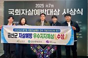 뉴한국방송뉴스통신사 신태공 기자 | 금산군은 지난 11일 국회 의원회관 대회의실에서 열린 제7회 국회자살예방대상 시상식에서 군 그룹 우수 지자체상을 받았다. 국회자살예방포럼과 안전생활실천시민연합은 지난 2019년부터 매년 전국 229개 기초지방자치단체를 대상으로 자살예방 활동을 조사하고 있다. 평가는 조직, 예산, 인력, 사업, 자살률 등 5개 영역과 17개 지표에 따라 점수화되며 지자체 규모에 따라 △인구 30만 미만 시 △인구 30만 이상 시 △구 △군 등 4개 그룹으로 구분하고 그룹별 상위 3개 지자체를 우수지자체로 선정했다. 금산군은 동일 그룹 평균인 54.8점보다 높은 종합점수 75.6점을 받았다. 주요 우수사례로 지역 특성을 기반으로 한 맞춤형 자살예방사업 추진, 생명지킴이 양성 및 교육, 고위험군 집중 개입, 지역사회 협력체계를 통한 촘촘한 안전망 구축 등이 꼽혔다. 특히, 생애주기별 지원 체계와 주민 접근성을 높인 상담·지원 프로그램이 인정받았다. 이 외에도 생명존중문화 확산을 위한 추진 상황으로 주민 인식개선 활동, 고위험군 맞춤지원 확대, 지역 특성을 반영