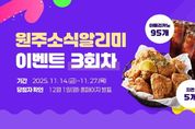 뉴한국방송뉴스통신사 양호선기자 기자 | 원주시는 시정 소식부터 행사·축제·복지 정보까지 시민들에게 유용한 정보를 문자 메시지로 알려주는 ‘원주소식알리미’ 서비스를 운영하고 있다. 시는 시민과의 소통을 강화하고 원주소식알리미 서비스를 활성화하기 위해 11월 14일부터 27일까지 구독 이벤트를 진행한다. 행사는 전 국민 누구나 참여할 수 있다. 원주시 홈페이지에서 원주소식알리미 서비스를 신청한 뒤, 이벤트 홈페이지(네이버폼)에 참여 정보를 입력하면 된다. 기존 구독자도 참여 가능하다. 추첨을 통해 총 100명에게 아메리카노(95명)와 치킨(5명) 쿠폰을 증정한다. 당첨자는 12월 1일 시 홈페이지를 통해 발표될 예정이다. 길경화 정보통신과장은 “앞으로 원주소식알리미가 시민들에게 더욱 빠르고 유용한 시정 정보를 제공하는 소통 플랫폼으로 자리매김할 수 있도록 최선을 다하겠다”라고 말했다. [뉴스출처 : 강원도 원주시]