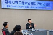 뉴한국방송뉴스통신사 신유철기자 기자 | 경상남도의회 이시영(국민의힘, 김해7) 의원은 12월 17일 김해교육지원청에서 '김해지역 고등학교 배치 관련 간담회'를 열었다. 이날 간담회에는 경남도교육청 학교지원과 최치용 과장, 김해교육지원청 교육지원국 정원태 국장, 김해시청 교육체육국 김재한 국장을 비롯한 관계자 및 지역 주민이 함께 참석해, 장유권 고등학교 부족에 따른 과밀과 원거리 통학 불편 등 지역 교육현안을 공유하고 실질적인 개선 방향을 논의했다. 특히 이번 간담회는 기존의 문제 제기에서 한 걸음 더 나아가, 실행 가능한 대안과 기관별 역할을 구체화하는 데 초점을 맞췄다. 이 의원은 “지금은 김해지역 교육현안을 두고 관계기관이 같은 방향으로 논의와 협력을 모아 역할을 분명히 하고, 학생·학부모 불편을 줄일 수 있는 대책을 신속히 마련해야 한다”며 간담회 취지를 밝혔다. 현재 장유지역은 교육수요가 집중되는 지역임에도, 고등학교 규모와 수가 수요에 비해 충분하지 못해 과밀과 통학 부담이 동시에 커지고 있는 상황이다. 이에 참석자들은 장유권 고교 수요 증가에 대응하기 위해 구도심권 학교의
