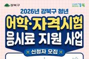 뉴한국방송뉴스통신사 신유철기자 기자 | 서울 강북구는 미취업 청년의 취업 준비 비용 부담을 덜기 위해 ‘청년 어학·자격시험 응시료 지원 사업’을 전년보다 확대 시행하고, 총 900명을 모집한다. 이는 지난해보다 200명 늘어난 규모다. 이번 사업은 취업 준비 과정에서 반복적으로 발생하는 시험 응시료 부담을 완화하고 청년들의 자기계발과 취업 역량 강화를 지원하기 위해 추진된다. 구는 예산을 확대해 더 많은 청년이 혜택을 받을 수 있도록 지원 인원을 늘렸다. 지원 대상은 신청일 기준 강북구에 주민등록이 되어 있거나 강북구 소재 대학에 재학 또는 휴학 중인 19세 이상 39세 이하 미취업 청년이다. 지원 대상 시험은 2026년 1월 1일 이후 응시한 ▲어학시험 ▲국가기술(전문)자격시험 ▲국가공인 민간자격시험 ▲한국사능력검정시험 등이며, 응시 횟수와 관계없이 1인당 최대 10만원 범위에서 실제 응시료를 지원한다. 신청기간은 2026년 4월 1일부터 12월 11일까지이며, 신청을 원하는 청년은 구비서류를 갖춰 일자리청년과(도봉로 323 용신빌딩 2층)로 방문하거나 이메일로 제출하면 된다. 다만