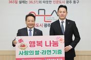 뉴한국방송뉴스통신사 김성의 기자 | 광주 동구는 광주무등청년회의소가 지난 9일 지역 내 취약계층의 따뜻한 겨울나기 지원을 위해 백미와 라면을 후원했다고 밝혔다. 이번 전달식은 지역사회 나눔 문화를 확산하기 위한 것으로, 백미 10㎏ 30포와 라면 30박스 등 총 150만 원 상당의 물품이 기부됐다. 후원 물품은 겨울철 한파로 어려움을 겪는 쪽방촌 주민들의 식사 지원에 활용될 예정이다. 백미는 들랑날랑 커뮤니티센터에서 쪽방촌 주민을 위한 무료 점심 식사 제공에 사용되며, 라면은 쪽방촌 공유부엌에 비치해 주민들이 언제든지 간편한 식사와 간식을 자율적으로 이용할 수 있도록 할 계획이다. 김창범 회장은 “지역사회와 함께 성장해 온 청년단체로서 쪽방촌 주민들을 위한 식사 지원에 동참하게 되어 매우 뜻깊게 생각한다”면서 “앞으로도 지역사회에 도움이 되는 나눔 활동을 지속적으로 이어가겠다”고 말했다. 동구 관계자는 “연일 이어지는 한파 속에서 이웃의 일상을 지켜주는 따뜻한 나눔을 실천해 주신 광주무등청년회의소에 깊이 감사드린다”면서 “사람을 먼저 생각하는 인문도시 동구의 가치가 이번 나눔을 통해 현