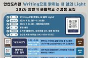 뉴한국방송뉴스통신사 신태공 기자 | 대전 대덕구 안산도서관이 글쓰기를 통해 삶을 성찰하는 인문 프로그램을 마련했다. 안산도서관은 ‘Writing으로 밝히는 내 삶의 Light’를 주제로 2026년 상반기 문화학교 수강생을 오는 24일부터 모집한다고 밝혔다. 강의는 3월 31일부터 5월 26일까지 총 8회 운영된다. 시·수필·서사 장르 등 3개 분야의 전문 강사를 초빙해 작품 감상과 창작 활동을 병행한다. 세부 강좌로는 △반짝이는 삶을 시어로 옮기는 ‘나와 시 쓰기’(변선우 강사) △내면의 성장을 위한 ‘매력적인 수필 창작’(양병태 강사) △신춘문예 수상작 분석 및 실전 글쓰기를 다루는 ‘서사적 장르 글쓰기’(이주현 강사)가 마련돼 있다. 수업은 매주 화·수·금요일 오전 10시부터 12시까지 안산도서관 3층 강좌실에서 진행된다. ‘ 참여 대상은 50~60대 중장년층을 중심으로 글쓰기에 관심 있는 성인이며, 참가비는 무료다. 접수는 도서관 홈페이지와 네이버폼 QR코드, 방문 및 전화로 가능하며 정원 마감 시까지 선착순으로 진행한다. 대덕구 관계자는 “삶을 기록하는 힘은 자신을