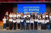 뉴한국방송뉴스통신사 신유철기자 기자 | 제주국제자유도시개발센터와 재단법인 제주평생교육장학진흥원(원장 진희종)은 10월 16일, JDC본사 4층 대회의실에서 'JDC 환경장학금' 장학증서 수여식을 개최했다고 밝혔다. 이번 장학사업은 제주 지역 환경미화원들의 헌신에 감사하고, 그 자녀들이 학업에 전념하여 미래의 리더로 성장할 수 있도록 지원하는 뜻깊은 자리였다. JDC 환경장학금은 JDC의 ESG경영 실천의 일환으로 환경 보전과 사회적 책임을 다하기 위해 마련된 사업이다. 특히, 이 장학금은 JDC가 2019년부터 도입한 친환경 생분해 쇼핑백 사용으로 발생한 보증금을 바탕으로 조성됐다는 점에서 의미가 깊다. 올해는 중학생 26명, 고등학생 25명을 포함해 총 51명의 학생들이 장학금 대상자로 선정됐다. 이는 작년(38명)보다 13명이 늘어난 규모로, 더 많은 학생들에게 학업 전념의 기회를 제공하고자 하는 JDC의 의지를 담았다. JDC는 내년에도 제주 환경미화원 자녀들이 장학금 혜택을 받을 수 있도록 지원을 이어갈 계획이다. 손봉수 JDC 면세사업본부장은 “이번 장학금은 환경