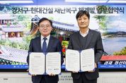 뉴한국방송뉴스통신사 신유철기자 기자 | 서울 강서구는 15일 폭설, 수해와 같은 자연재해에 보다 신속히 대응하기 위해 현대건설(대표이사 이한우)과 손을 맞잡았다. 구는 이날 구청에서 현대건설과 ‘민간위험시설물 긴급 복구 지원’을 위한 업무협약을 체결했다. 협약식에는 진교훈 구청장을 비롯해 김태희 현대건설 건축사업부장 등이 참석했다. 협약에 따라 양측은 자연재해 복구 활동에 적극 협력하기로 했다. 주요 내용은 피해 복구 작업에 필요한 굴삭기, 덤프, 지게차 등 장비 긴급 투입, 신속한 복구를 위한 대민지원 등이다. 진교훈 구청장은 “이번 협약으로 예기치 못한 자연재해가 발생했을 때 신속한 복구가 이뤄질 것으로 기대한다”며 “자연재해 대응 안전망을 더욱 공고히 구축해 나가겠다”고 말했다. 한편, 업무협약식과 함께 이웃돕기 성금 전달식도 진행됐다. 현대건설과 인창개발(회장 김영철)은 어려움에 처한 지역 주민을 위해 써달라며 성금 3천만 원을 기탁했다. [뉴스출처 : 서울특별시 강서구]
