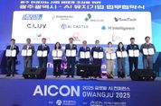뉴한국방송뉴스통신사 김성의 기자 | 광주광역시는 15일 김대중컨벤션센터에서 열린 ‘아이콘(AICON) 광주 2025’ 개막식에서 국내 인공지능(AI) 유망기업 10개 사와 ‘광주형 인공지능(AI) 비즈니스 업무협약(MOU)’을 체결했다. 이번 협약은 ‘아이콘(AICON) 광주 2025’가 제시한 ‘AI 혁신도시 광주로의 대전환(AX: AI Transformation)’ 비전을 구체화하고 지속가능한 인공지능산업 생태계 구축을 가속화하기 위한 것이다. 광주시는 이를 통해 광주를 인공지능(AI) 기술 실증과 산업 혁신의 거점도시로 한 단계 더 발전시키는 계기가 될 것으로 기대하고 있다. 이날 협약식에는 ▲㈜디지털프레소 ▲브레인웍스㈜ ▲㈜브릭섬 ▲㈜사미텍 ▲㈜씨럽 ▲㈜에이아이캐슬 ▲㈜에이치인텔리전스 ▲㈜엠디에스인텔리전스 ▲위즈팜 ▲㈜폴미 등 10개 기업이 참여했다. 이들 기업은 AI 데이터 분석, 음성·자연어 처리, 콘텐츠 등 다양한 분야에서 기술력과 성장성을 인정받은 혁신 중소기업들이다. 앞으로 광주를 거점으로 기술개발 및 사업화해 지역 산업을 고도화하고 일자리를 창출하는데 힘을 보탤 계획이