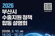 뉴한국방송뉴스통신사 신유철기자 기자 | 부산시는 오늘(10일) 오후 2시 벡스코(BEXCO) 컨벤션홀 205호에서 '2026 부산 수출지원정책 합동설명회'를 개최한다고 밝혔다. 설명회는 시가 주최하고 부산경제진흥원이 주관하며, 수출 지원 유관기관과 지역 수출 중소기업 임직원 등 200여 명이 참석할 예정이다. 이번 설명회는 최근 중동 사태와 미국 관세정책 등으로 국제 통상 환경의 불확실성이 확대되는 가운데, 지역 수출기업들이 변화하는 환경에 효과적으로 대응하고 다양한 수출지원 정책을 활용해 수출 경쟁력을 높일 수 있도록 지원하기 위해 마련됐다. 총 11개 수출 지원 유관기관*이 한자리에 모여, ▲기관별 2026 수출지원정책 및 특화 사업 안내 ▲기업의 현장 애로사항 청취 및 해결 방안 모색 등 원스톱 수출 지원 사격에 나설 예정이다. 특히, 시는 '2026년 부산시 통상진흥계획'과 함께 ▲'글로벌 리스크 대응 특별자금' 등 총 3천5백억 원 규모의 정책자금 공급 ▲해외 물류비 지원 확대 등 수출기업 지원 강화 ▲물가 안정 비상 티에프(TF) 가동 등 긴급 추진 중인 위기 대응 시책을 집중 홍보할