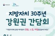 뉴한국방송뉴스통신사 신유철기자 기자 | 행정안전부는 민선 지방자치 30주년을 맞이해 전국 5개 권역을 대상으로 권역별 간담회를 진행한다고 밝혔다. 이와 관련해 8월 25일 강원특별자치도 춘천시 강원디자인진흥원에서 첫 번째 간담회를 개최한다. 이날 간담회에 이어 9월에서 10월 중 경상권(경상북도 구미시), 수도권(인천광역시), 충청권(세종특별자치시), 전라권(광주광역시)에서도 시·도와 함께 권역별 지방자치 30주년 간담회를 개최할 계획이다. 이번 강원권 간담회에는 김민재 행정안전부 차관, 김광래 강원특별자치도 경제부지사가 참석해 주민, 지방의원, 지방공무원 등 약 40명을 대상으로 지방자치에 대한 경험과 느낌, 앞으로의 바람 등을 청취할 예정이다. 행사는 주민 참여 활성화, 행정서비스 만족도, 강원특별자치도 자치권, 지방의회의 역할 등 주제별 전문가 설명과 지방자치 퀴즈, 질의응답 이후에 모든 참석자가 자유롭게 의견을 발표하는 순서로 진행된다. 또한, ‘지방자치에 바란다’, ‘지방자치는 ㅇㅇㅇ이다’ 등 엽서 제작과 영상 편지 남기기와 같은 다양한 이벤트도 열린다. 행정안전부