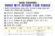뉴한국방송뉴스통신사 신유철기자 기자 | 영천시 동부동 주민자치위원회는 오는 2월 19일부터 25일까지 ‘2026년 제1기 정기강좌’ 수강생을 모집한다고 밝혔다. 모집강좌는 ▲요가(30명) ▲댄스스포츠(40명) ▲색소폰(20명) ▲기초미술(아크릴화)(20명) ▲포크아트(실용장식미술)(20명) ▲민화(20명) ▲난타(20명) ▲디스코장구(20명) ▲스마트폰활용(20명) ▲라인댄스(30명) ▲웃음힐링체조(40명) ▲탁구 오전반(30명) ▲탁구 저녁반(30명)으로, 총 13개 강좌, 340명을 모집한다. 자세한 모집요강은 영천시 홈페이지에서 확인할 수 있다. 신청은 기간 내 동부동 행정복지센터 방문을 통해 선착순으로 접수할 수 있으며, 수강료는 5개월 기준 25,000원(재료비 등 별도)이다. 최해곤 위원장은 “주민자치센터 정기강좌에 많은 관심을 부탁드린다”며, “앞으로도 주민들의 의견을 적극 반영해 주민자치센터가 생활 속 배움의 공간이 될 수 있도록 힘쓰겠다”고 전했다. 조남철 동부동장은 “주민들을 위해 다양한 강좌를 개설해 주신 주민자치위원회의 노고에 감사드린다”며, “강좌가 안정적으로 운