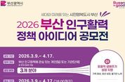 뉴한국방송뉴스통신사 신유철기자 기자 | 부산시는 저출생·청년 유출·고령화 등 인구구조 변화에 대응하고, 시민의 창의적인 정책 제안을 시정에 반영하기 위해 '2026 부산 인구활력 정책 아이디어 공모전'을 개최한다고 밝혔다. 이번 공모전은 지역 특성을 반영한 인구정책을 시민과 함께 발굴하는 시민참여형 공모로, 정책 공감대 형성과 실효성 있는 아이디어 발굴을 목표로 한다. 시는 시민과 현장의 목소리가 반영된 아이디어 중 우수 제안은 관련 정책 검토를 거쳐 향후 인구정책에 반영할 계획이다. 공모 분야는 ▲포용적 생애주기 성장 지원 ▲매력적 정주·생활 환경 조성 ▲초광역 혁신성장 기반 확충 등 3개 분야다. 심사는 1차 서면 심사와 2차 발표 심사로 진행되며, 총 8건의 수상작을 선정한다. 최종 결과는 6월 중 시 누리집을 통해 발표할 예정이다. 시상 규모는 ▲최우수상 1점(200만 원) ▲우수상 2점(각 100만 원) ▲장려상 5점(각 20만 원)이다. 수상작은 정책 반영 가능성과 실행력, 창의성 등을 종합적으로 평가해 최종 선정하며, 오는 7월 '제15회 인구의 날' 기념행사와