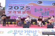 뉴한국방송뉴스통신사 신다은기자 기자 | 전남 무안군은 지난 1일 무안읍 갯벌낙지축제 주무대에서 2025년 무안군 일반농산어촌개발사업 성과발표회 ‘난리난리 3탄’을 낙지축제와 연계하여 개최했다. 이날 행사에는 공연자 200여 명과 김산 군수, 이호성 군의회 의장, 정길수 도의원, 정은경 부의장 등 군의원과 지역 내·외빈 등이 참석해 함께 축하했다. 이번 축제는 낙지 축제, 도시재생 마을관리사회협동조합, 난리난리 축제 등이 함께 어우러져 한층 더 풍성해졌다. 행사는 풍물패 길놀이 공연을 시작으로 무안군이 전국 최초로 추진한 마마학당 어머니들의 노래와 댄스 공연을 비롯해 읍·면별 13개 동아리팀의 댄스·장구· 노래·요가 등 다채로운 무대가 이어져 함께한 주민과 관광객의 환호와 박수를 받았다. 이와 함께 운영된 15개 전시·체험 부스도 큰 인기를 끌었다. 버나놀이와 남사당 체험, 탁구·드립커피·키링 만들기 등 다양한 체험 프로그램이 진행됐으며, 서예작품 전시 등 풍성한 볼거리도 마련됐다. 특히 고구마와 단호박으로 만든 간식류, 단감 시식, 도시재생 마을관리사회협동조합의 파전과 단호