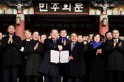 뉴한국방송뉴스통신사 김성의 기자 | 병오년 새해, 광주시와 전남도가 대한민국 민주화의 상징인 국립5·18민주묘지 오월영령 앞에서 광주‧전남 대부흥의 새 역사를 열어가기 위한 행정통합을 즉각 추진하기로 공동 선언했다. 강기정 광주광역시장과 김영록 전라남도지사는 2일 국립5‧18민주묘지에서 합동참배를 마친 뒤 민주의문 앞에서 광주‧전남을 하나로 묶는 ‘통합 지방정부 추진 공동선언문’을 발표했다. 광주와 전남은 인공지능(AI)과 에너지 대전환 시대를 맞아 남부권 반도체 벨트의 중심축이자 대한민국 미래 핵심 거점으로 도약하기 위해서는 광역 차원의 통합 추진이 필요하다는 데 공감대를 형성했다. 특히 이재명 정부가 시‧도 통합을 추진하는 지방자치단체에 대해 서울특별시에 준하는 지위와 조직 특례를 부여하고, 교부세 추가 배분과 공공기관 우선 이전 등 과감한 특전(인센티브)을 검토하고 있는 점을 고려할 때, 지금이야말로 광주‧전남이 행정통합을 추진할 최적기라는데 뜻을 모았다. 이에 따라 양 시‧도는 이번 공동선언을 통해 광주‧전남 행정통합을 더 이상 미루지 않고 즉각 추진하기로 합의했다. 양 시‧도는