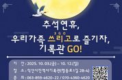 뉴한국방송뉴스통신사 김성의 기자 | 온가족이 모이는 추석 명절, 익산에 세대 간 공감을 나누는 특별한 프로그램이 마련됐다. 익산시는 추석을 맞아 오는 10월 3일부터 12일까지 시민역사기록관에서 '추석연휴, 우리가족 쓰리고로 즐기자, 기록관 고(Go)'를 운영한다고 29일 밝혔다. 이번 프로그램은 고향을 방문하는 관람객이 옛 시절 정취를 떠올릴 수 있도록 기획됐다. 할아버지·할머니부터 손주까지 세대 간의 소통과 추억을 공유하는 장이 될 전망이다. 우선 '1GO(소원쓰고)'는 가족이 함께 편지를 완성하는 시간이다. 다가오는 2026년 붉은 말의 해를 맞아 가족의 소원을 담은 엽서를 작성해 '기록우체통'에 넣으면 새해 선물로 받을 수 있다. '2GO(함께놀고)'는 할아버지·할머니가 어린 시절 즐겼던 다양한 전통놀이를 손주와 함께 체험할 수 있는 프로그램이다. 이어 '3GO(기록하고)'는 사진촬영 이벤트다. 가장 인상 깊었던 기록물이나 기록관 건물 앞에서 가족사진을 찍어 기록으로 남기면, 연말 크리스마스에 인화본을 선물로 받을 수 있다. 한