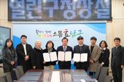 뉴한국방송뉴스통신사 김성의 기자 | 광주 남구는 장애아동의 건강한 성장과 발달을 지원하기 위해 세이브더칠드런 및 행복발달코칭센터와 손잡고 놀이교사 지원 사업을 본격 추진한다. 11일 남구에 따르면 장애아동 발달 지원을 위한 성장 놀이터 홈서비스 업무 협약식이 지난 10일 오전 11시 구청 1층 열린 민원실에서 열렸다. 협약식에는 김병내 구청장과 김동관 세이브더칠드런 서부지역본부장, 박지현 행복발달코칭센터 대표 등이 참석, 복지 사각지대에 놓인 장애아동의 놀 권리와 사회성 향상을 위한 각 기관의 노력을 약속했다. 3곳의 기관은 업무 협약에 따라 오는 3월부터 12월까지 중위소득 120% 이하 가정의 만 12세 미만 장애아동 15~20명을 대상으로 성장 놀이터 홈서비스를 제공한다. 이 과정에서 남구청과 세이브더칠드런은 사업비와 운영비를 지원하며, 행복발달코칭센터는 해당 사업을 수행하는 기관으로 참여한다. 성장 놀이터 홈서비스는 1대 1 놀이 활동과 소그룹 집단놀이로 구성됐다. 1대 1 놀이 활동은 수행 교사가 1년간 90시간 동안 장애아동의 가정을 방문해 아이와 함께 정서적 안