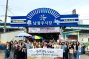 뉴한국방송뉴스통신사 김성의 기자 | 광주문화재단은 추석을 앞두고 지역 전통시장에서 장보기 행사를 개최했다. 행사는 10월 1일 대인시장을 시작으로 10월 2일 남광주시장, 양동시장, 봉선시장 등 관내 4개 전통시장에서 진행됐다. 재단 임직원들은 온누리상품권을 활용해 명절 준비에 필요한 식재료와 생활용품을 구입하며 전통시장 소비 촉진에 힘을 보탰다. 이번 행사는 물가 상승과 경기 침체로 위축된 소비 환경 속에서 전통시장 이용을 장려하고, 소상공인의 매출 증대에 기여한다는 점에서 의미가 크다. 노희용 광주문화재단 대표이사는 “전통시장은 단순한 구매 공간이 아니라 지역민의 생활이 이어지는 중요한 기반”이라며, “이번 장보기 행사가 상인들에게 실질적인 도움이 되고 지역경제에도 활력을 주길 바란다”고 말했다. [뉴스출처 : 광주광역시문화재단]