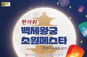 뉴한국방송뉴스통신사 김성의 기자 | 추석 전날 밤, 익산 백제왕궁이 시민들의 소망을 담은 소원등으로 환히 빛난다. 익산시는 추석 전날인 오는 10월 5일에 유네스코 세계유산 백제왕궁(왕궁리 유적)에서 '한가위 백제왕궁 소원페스타 : 천년의 소원을 담다'를 개최한다고 25일 밝혔다. 참여는 사전 예약과 현장 접수 모두 가능하다. 사전 예약은 오는 29일 오전 10시부터 마수리늘배움협회 누리집을 통해 선착순 800명을 접수하고, 현장에서도 200명을 선착순으로 모집한다. 이번 축제는 시민들이 직접 적은 소원문을 '소원등'에 달아 백제왕궁 밤하늘을 밝히며, 가족과 이웃이 함께 소망을 나누는 특별한 시간으로 꾸며진다. 소원등은 근심을 내려놓고 평안과 희망을 기원하는 상징으로 달맞이, 연등 문화 등의 풍속과 맞닿아 있다. 이에 가족의 안녕을 기원하고 풍요에 감사하는 추석의 의미를 한층 깊게 할 것으로 기대를 모은다. 행사는 오후 5시 소원문 쓰기로 시작된다. 이어 △백제의 마술사 공연 △버블쇼 △사물놀이패와 어우러지는 백제왕궁마을장터 재담마당극 등 다채로운