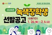뉴한국방송뉴스통신사 신유철기자 기자 | 재단법인 인천 중구월디장학회(이사장 김정헌)는 지역 인재 육성을 위해 ‘2026년도 녹색 장학생’ 대상자를 모집한다고 20일 밝혔다. ‘녹색 장학생’은 대학 입학 예정자 중 입학금이나 등록금 마련에 어려움을 겪는 학생들을 지원함으로써, 안정적인 환경에서 학업에 전념하고 진로를 설계할 수 있도록 돕는 데 목적을 뒀다. 올해는 고등학교 학력 인정자 5명을 포함한 총 20명을 대상으로 1인당 최대 300만 원의 장학금을 지급할 계획이다. 대상은 2026년도 국내 고등학교 졸업생(또는 졸업 예정자)이나 고등학교 학력 인정자 중 대학 입학 예정자다. 단, 모집 공고일(1월 19일) 기준 학생 본인 또는 학부모가 인천 중구에 1년 이상 계속 거주하고 있어야 한다. 희망자는 오는 1월 26일부터 2월 6일까지 장학금 신청서 등 필수서류를 갖춰 중구 월디장학회(인천광역시 중구 신포로 46번길 31 중구보훈회관 5층)로 방문 또는 우편 신청하면 된다. 김정헌 이사장은 “중구의 미래를 이끌 인재들이 경제적 어려움으로 학업을 포기하지 않고 안정적으로 성장할 수 있도록